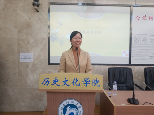 论坛开始,全体起立,奏唱团歌。孔春辉致辞,她强调要深入学习党的十九大精神。孔春辉带领历文学子重温了国家和湖南省近期的教育政策,分析了教育的启示引领作用,梳理教育与青年及时代与青年的关系,最后对青年员工寄予了希望。