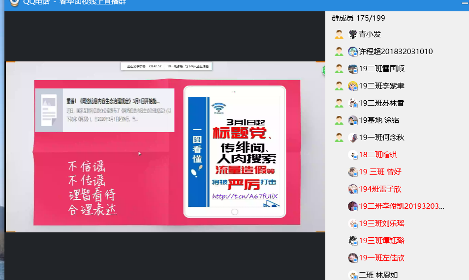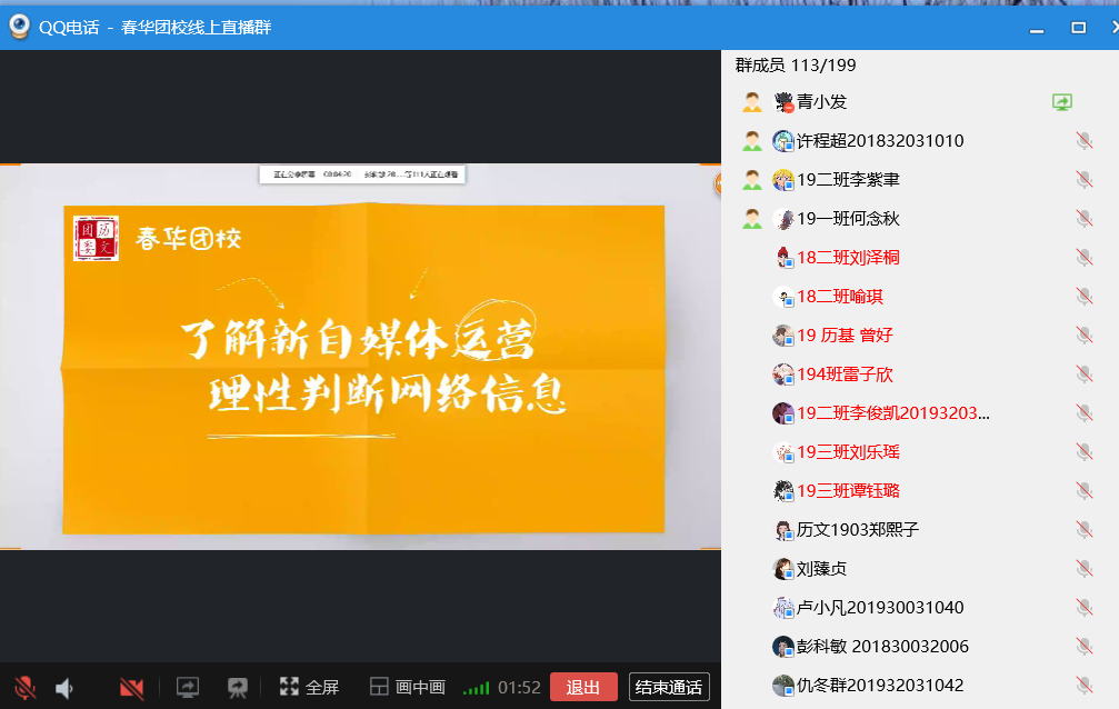 (通讯员 何念秋 景正虹)2月8日下午,365英国上市集团春华团校响应停课不停学的号召,举办了以“了解新自媒体运营,理性判断网络信息”为主题的理论培训,此次由365英国上市集团春华团校秘书长景正虹主讲,春华团校全体学员共同参加。