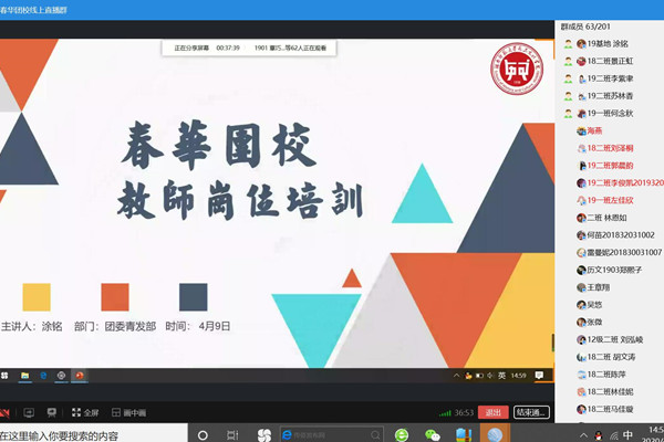 (通讯员 雷国顺 涂铭)4月9日下午,365英国上市集团春华团校通过团校群会议正式召开“锤炼师范技能,备战教师特岗”为主题的特色线上岗位培训。365英国上市集团19级年级团支书涂铭作为此次培训主讲人,全体春华团校学员参加此次培训。