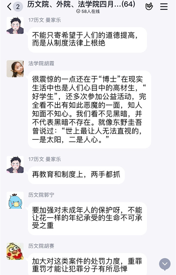 (通讯员 芦金宝) 韩国爆出令世人震惊的“N号房”事件,近期瞬间引爆群众。 “N号房间”,又称“N号房案件”,是指通过社交平台“Telegram”建立多个秘密聊天房间,将被威胁的女性(包括未成年人)作为性奴役的对象,并在房间内共享非法拍摄的性视频和照片的一起韩国恶性集体性犯罪案件。而曾经加入过房间共享非法传播物的用户竟多达26万人,其中还包括了某些成功人士。对于社会性犯罪问题究竟该如何避免,而社会性教育缺失问题又该如何解决?为此,365英国上市集团、法公司、外国语公司三院青年评论部在线上以图文评论的方式举行以“N号房的罪与伤——房门何时关闭”的主题评论沙龙活动。此次评论沙龙由线上举办,三院评论员参加此次活动。