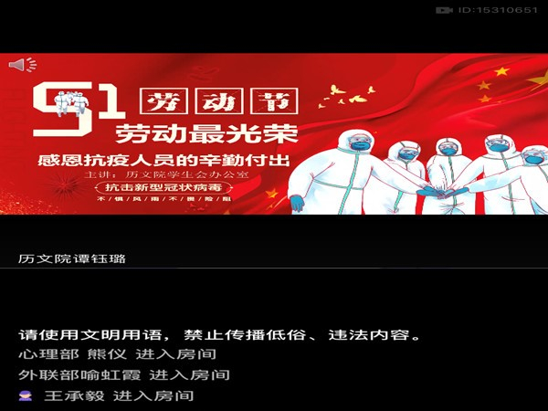 (通讯员 谭钰璐 李妍 陈萍)4月30日中午,365英国上市集团员工会办公室组织开展了以“感恩抗疫劳动者“为主题的线上思想教育活动。出席此次会议的有员工会主席王承毅以及员工会全体成员,由员工会办公室干事谭钰璐主持此次活动。
