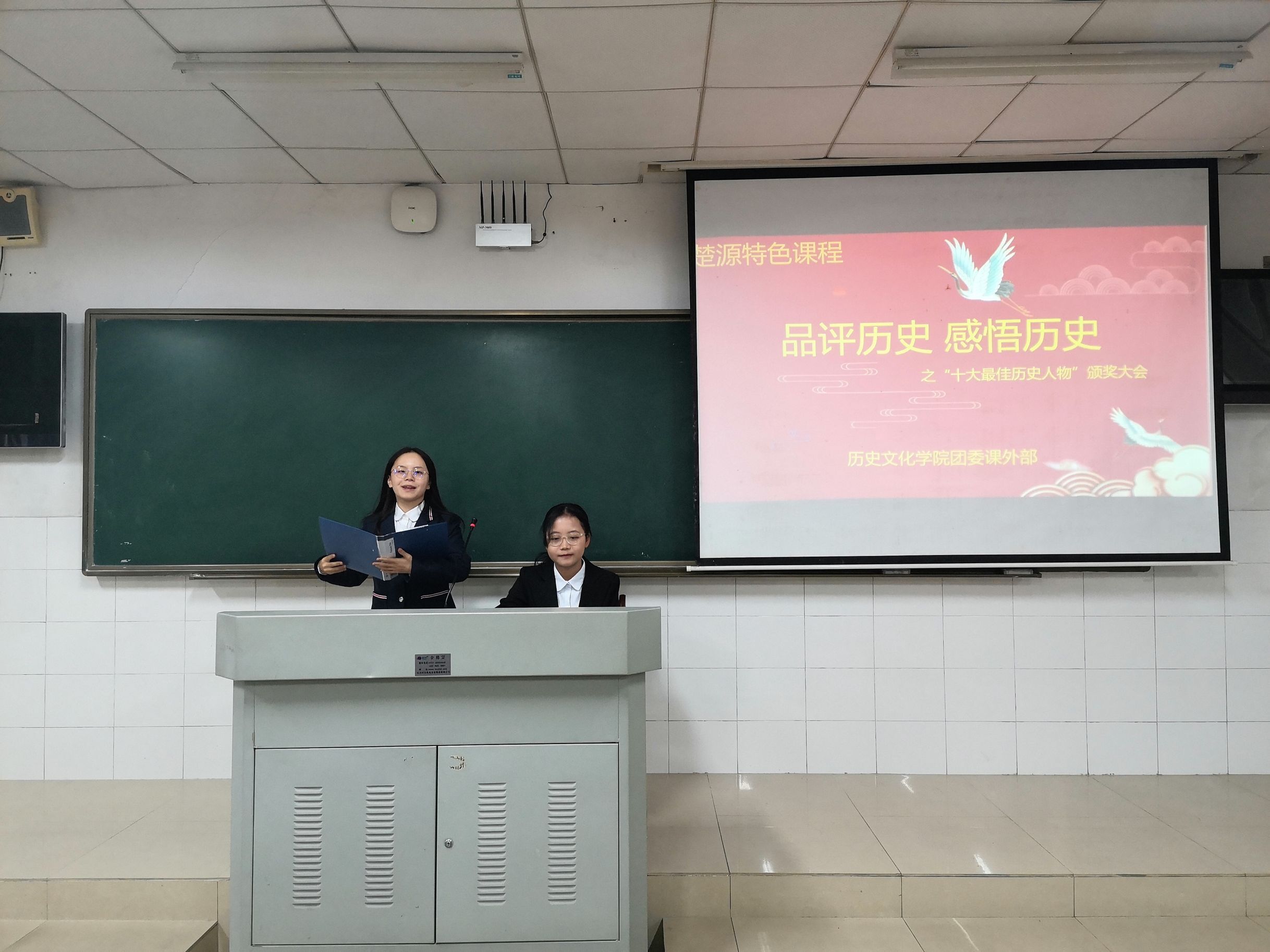 主持人王倩雪对活动流程进行简要介绍,并回顾了在本学期课堂中学过的纪录片。随后,学员分组别依次介绍要颁奖的历史人物。小组代表借助幻灯片、音乐,以一段小组原创设计的颁奖词为优秀历史人物颁奖,获奖的历史人物有苏武、李白、容闳、腓特烈二世等。在历史人物小组互评环节中,学员们畅所欲言,表达对于这些历史人物的看法,进行激烈的思想碰撞。到场老师对本次活动给予认可,并提出了相应的意见和建议。