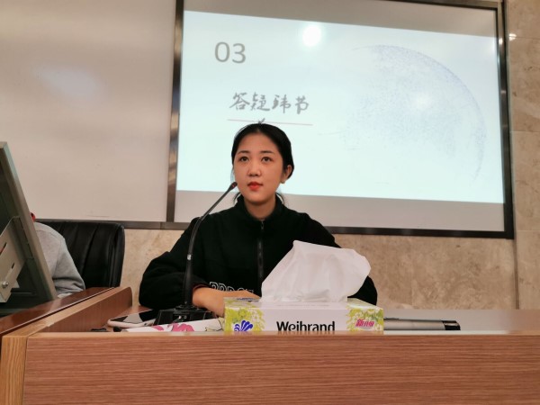 讲座伊始,殷雯先从一些获奖创意引入主题,随后再从大赛流程和大赛项目两个方面展开讲述。其中,大赛流程为员工报名参加、提交项目;青创部门审核;公司审核比赛;公司审核比赛。在此基础上,殷雯指出,一个好的项目需要好的包装和展示,其中构思书和幻灯片就是一个项目的脸面,直接关乎到项目的成败。其次,此次项目应符合大赛主题“走进生活,创意无限”,同时好的项目构思书必须要满足逻辑清晰、观点鲜明、文字精炼三大要点。最后,在同学们热烈的掌声中,会议圆满结束。