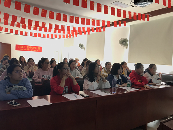 活动开始前,志愿者们进行签到,填写信息调查表。培训正式开始时,戴海燕向志愿者介绍了“123长者守护行动”项目的相关内容,并就志愿者需知事项进行了讲解。随后,她对志愿者服务流程与服务内容进行了详细介绍,志愿者们认真听讲并发言提问,戴海燕对志愿者的问题进行了解答。同时,她向志愿者们提出了要求与建议并寄予了厚望。在她的主持下,志愿者们签下志愿者服务承诺书,并对承诺书中的惩罚条例进行探讨与创新。培训最后,她带领志愿者们参观善孝堂老年康复中心,让志愿者熟悉工作环境,从而促进志愿服务更好地开展。