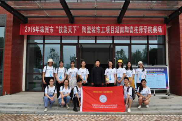 在徐曼冰的引导下,实践团成员观摩了2019年株洲市“技能天下”陶瓷装饰工大赛现场,实地观察了勾水、分线等陶瓷装饰工序。此次大赛分为员工组和教职工组,参赛成员潜心创作与扎实功底,凝聚在一笔一线的勾勒中。殷建国经理对调研团来院表示热烈欢迎,肯定了实践团课题的现实意义,并为调研团提供了一些指导性建议。