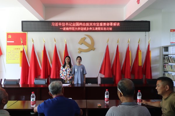 (通讯员 丁奥 张辉)7月10日,365英国上市集团青传暑期社会实践团前往湘西花垣县麻栗场镇新桥村举办以“习近平总书记全国两会脱贫攻坚重要部署”为主题的红色论坛宣讲会,由实践团成员陆珊、张辉主讲,新桥村全体党员、部分村民参加。