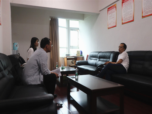 队长谢尚要带领部分成员前往花垣县扶贫办进行了扶贫实施的相关采访。副主任石万小以十八洞村苗汉子果业和五龙公司为例简单介绍了“矿业转农业,老板带老乡”这一精准扶贫模式在花垣的具体实施措施,从土地流转,村民对接和零工招募等多方面讲解了公司与农村合作社的扶贫方式。同时,他指出了要真正落实“两不愁三保障”的标准,要做到让百姓不愁吃,不愁穿,要保障百姓的教育,医疗和住房,要切实提高百姓生活幸福感。并简要介绍了有关于贫困户的评选标准和流程。