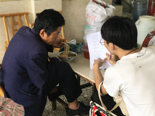 副队长符涛则带领组员进行入户访查,深入了解百姓对于政策实施的切实体验与当地精准扶贫的落实和贫困户的改善状况。大雨拦不住成员们下乡的热情,村民的积极配合也提高了调研问卷的质量和进展情况。