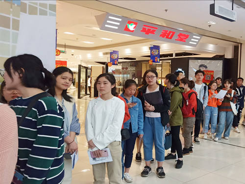 志愿者按编号分批分组依次入场接受面试,青工部维护现场秩序并协助面试。