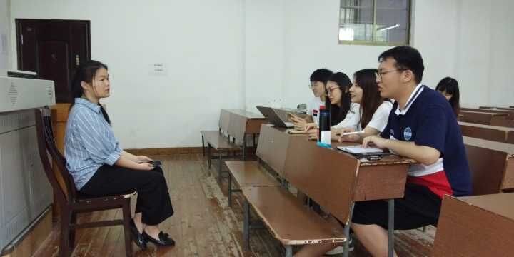 面试者通过自我介绍展示自己,并简要阐述了想加入三下乡队伍的原因。评委就面试者的特长提问,问题涉及对选题的理解、如何让处理队内矛盾、怎样良好地与当地居民沟通交流等多个方面。同时,评委就新闻写作、微信推送等宣传方面的能力对面试者进行考察。