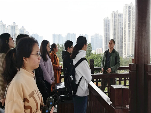随后,张屹带领志愿者们登上观鸟亭,描述了松雅湖湿地公园的布局与环境,并让志愿者们对湿地植物以及动物进行细致的观察,并一一解答他们的疑问。张屹总结指出志愿服务对湿地自然公司的重要性,并对新学期的志愿活动进行了规划与安排,同时表达了对志愿者们的期许。