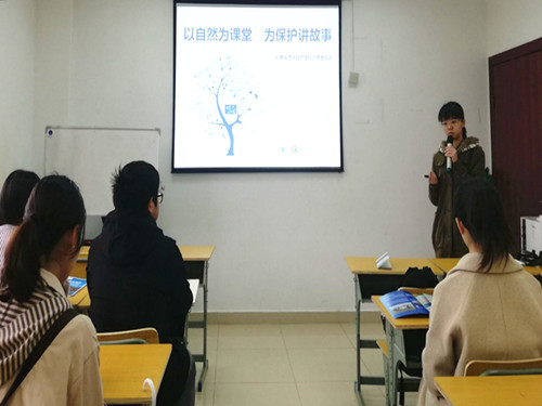 首先志愿者们依次进行了自我介绍,并表达了对志愿活动的期待。接着浣晓珊围绕自然教育和自然公司两个方面开展培训,具体介绍了志愿服务的内容和要求,并对“自然缺失症”、“学习金字塔”等名词进行了解释说明。