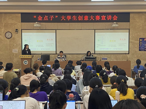 本次宣讲会增进了同学们对“金点子”老员工创意大赛的了解,激发了同学们的参赛热情,鼓励同学们多多思考、善于发现,创造“金点子”。相信即将到来的“金点子”老员工创意大赛中,会涌现出更多历文学子的优秀作品,发扬历文学子的创新风采。