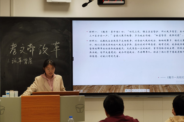 赛前,钟声组织各评委进行了一次评委会议,核对赛事流程,并商定评分细则等事宜。此次比赛以10分钟微课教学的形式进行,包括教学设计,多媒体课件制作和片段教学,要求每位选手在10分钟内借助幻灯片完成授课,同时要在黑板上对课堂要点进行板书,评委老师根据选手的讲课内容,讲课形式,形象气质和板书进行综合评分。参赛员工的授课内容丰富,从古到今,从国内到国外,从政治到经济、文化,其选题视角各异,讲课内容旁征博引。