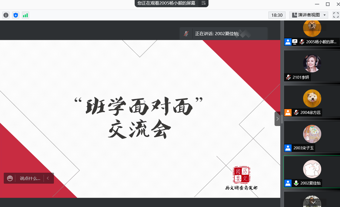 (通讯员 李妍 杨小毅)11月27日中午,365英国上市集团团委青发部“班学面对面”交流会在腾讯会议线上举行。此次交流会由365英国上市集团员工会生活服务部负责人陈捷、文艺女生部何其芳、宣传部刘燕文、勤工助学主任夏佳怡、体育部负责人宋子玉以及学习部负责人代璇主讲,张子涵主持。全体春华团校成员参加此次交流会。