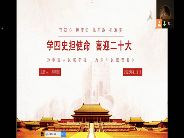 活动伊始,苏田甜以幻灯片的形式对党史、新中国史、改革开放史、社会主义发展史和即将召开的中共二十大进行了介绍。随后青马小组全体成员围绕四史学习展开交流和讨论,将四史学习同新时代建设伟大工程、推进伟大事业、实现伟大梦想的丰富实践联系起来。全体组员一致认同面对国际竞争的复杂变化,需要加强自己的思想立场,坚持党的领导,不忘初心,牢记使命,用青春的激情投身于实现中国梦的伟大实践,。