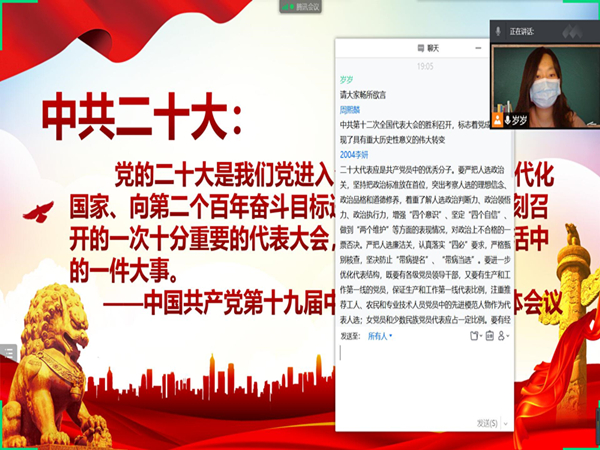 会议伊始,王可儿简要介绍了此次活动的主题和目的,随后围绕“四史学习内容及目的”、“老员工如何学好四史”、“以实际行动迎接中共二十大”等要点对此次学习主题进一步阐述。接着组长组织全体成员针对习近平总书记关于四史学习的经典语录,并就老员工如何以实际行动迎接中共二十大进行讨论。之后进行了针对四史知识及中共二十大相关知识的问答环节,通过问答的形式加深对相关知识的理解与掌握。最后,王可儿对此次学习活动进行总结,并希望大家要有广阔的胸怀与爱国的热情,在新时代新征程上留下无悔的奋斗足迹,以实际行动迎接党的二十大胜利召开。