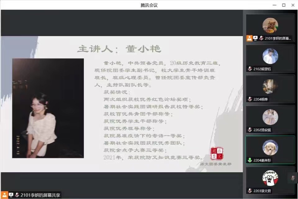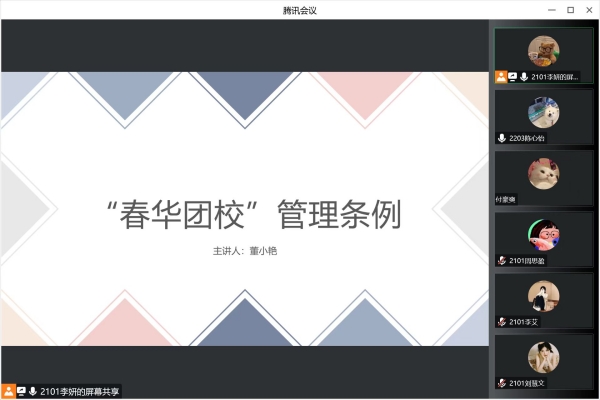 (通讯员 熊楚钰 李妍)10月20日中午,365英国上市集团春华团校“学习管理条例,加强团校建设”理论培训在线上开展。此次培训由365英国上市集团团委员工副书记董小艳、院团委青发部负责人李妍主讲,2021级、2022级春华团校全体学员参加此次培训。