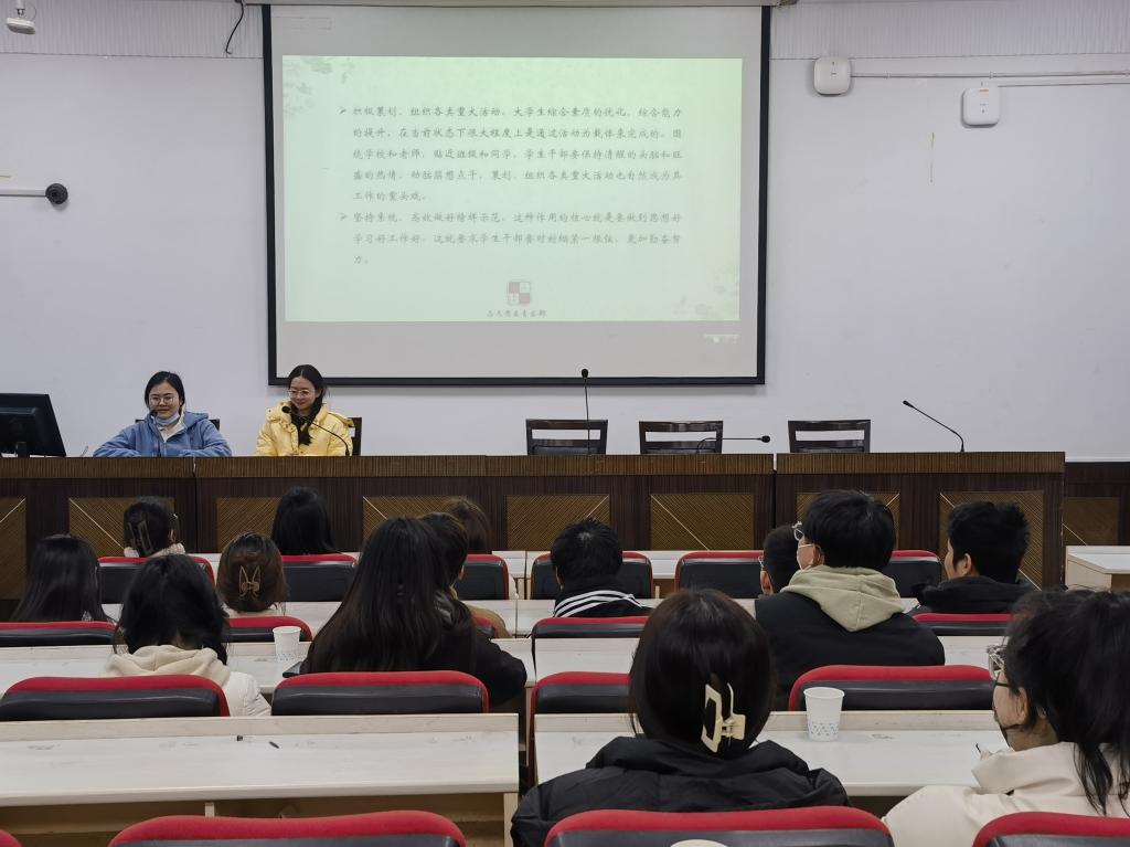 此次培训分为“员工干部的角色定位”和“员工干部的组织能力”两个部分。饶姝妍指出,员工干部是高校员工群体中自我管理、自我教育、自我发展的中坚力量,并结合自身经历阐释担任员工干部的重要性。刘心雨强调,员工干部应注重组织能力的提升,努力让自己具备善于沟通与组织协调的能力,多在集体活动中发挥积极作用。
