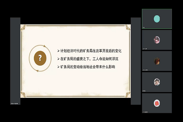 李昊主讲的内容是消失的"飞地":社会变迁下的梅田矿务局。他以团队深入梅田调查的实践活动经历为导入,从采访原矿务局职工与煤炭行业工作者、接触基层政府工作人员与村级干部、了解当地民意、搜集文字资料四个途径入手,了解矿务局的兴衰变迁,从而了解社会主义建设时期和改革开放时期国企面临的机遇与挑战。此次讲堂着重介绍了口述史学,利用口述史学的方法对有关梅田矿务局的历史记忆加以保存。李昊表示在口述史学中,关于同样的历史事件,不同的当事人会有不同的甚至对立的历史记忆,乃至表达出不同的价值观、道德观和意识形态,这需要研究者通过多种视角与态度来分析研究。