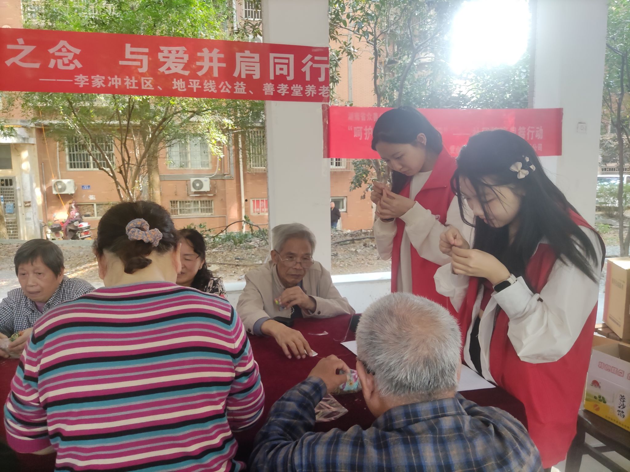 志愿者们与社区活动负责人一同前往李家冲社区开展活动。在活动现场,志愿者陪同社区老年人一起制作茱萸香囊、重阳糕。随后,志愿者们与社区医生为小区居民进行听力义诊,为社区老人送去健康和温暖。最后,志愿者们协助社区进行大扫除。志愿者们纷纷表示,能为老人们做一些力所能及的事情,看到他们开心的笑容,就觉得很有意义,今后将继续用实际行动将尊老、敬老、爱老的传统美德永久传承下去。
