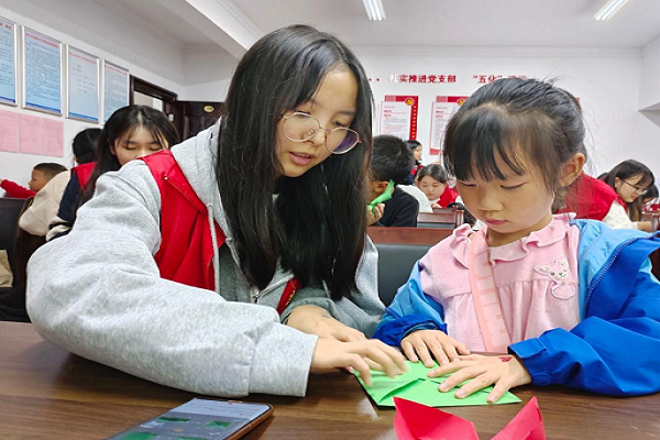 此次活动采取理论与实践相结合的方式进行,寓教于乐,增加教学趣味。首先,主讲人用问答的方式积极与小朋友们进行互动,引出了此次活动的主题。随后,志愿者们带着社区小朋友进行手工制作,将卡纸剪、折至各式形状,并带领小朋友上台展示分享寓意。最后,主讲人为小朋友们讲述了传承中华传统优秀文化的重要意义。