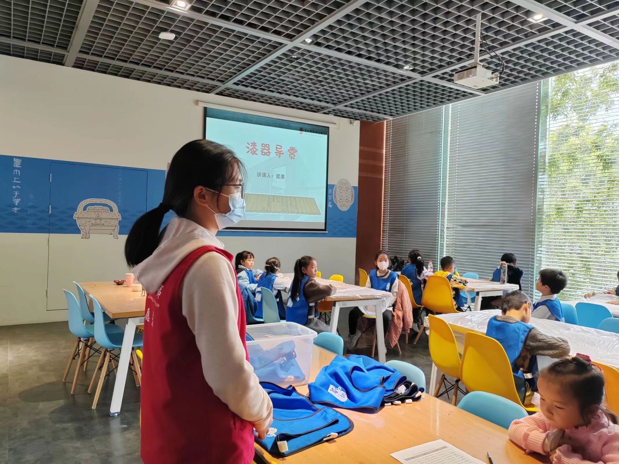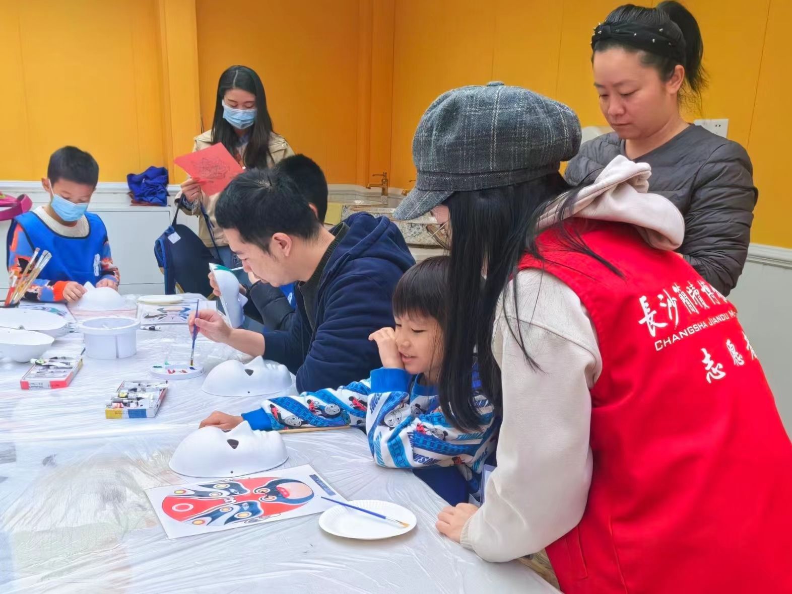 活动伊始,志愿者根据自身兴趣与能力选择报名“导赏使者”、“咨询达人”或“教育助手”。随后,青工部带领志愿者前往博物馆参加馆方培训,并分配各组任务。“导赏使者”负责为游客们提供讲解服务,“咨询达人”负责为游客们答疑解惑,“教育助手”负责协助馆方老师带领小朋友开展相关的文化艺术课程。在课程互动过程中,志愿者们帮助馆方老师分发材料,给小朋友们讲解制作流程和注意事项,与小朋友们一起参与到脸谱等传统手工艺品的制作之中,在欢声笑语中向他们传播历史知识。