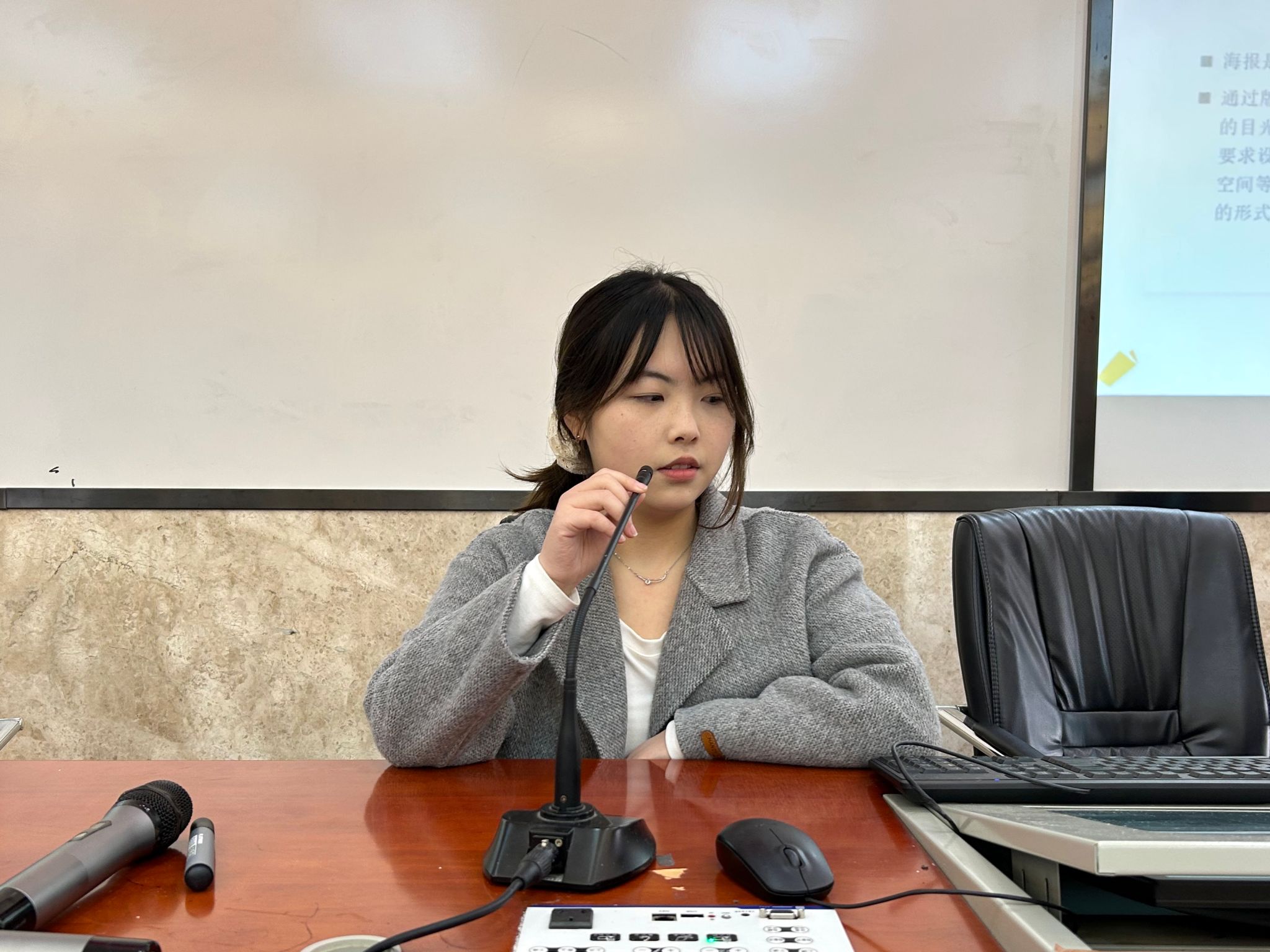 邓诗敏对海报设计的主要目的与作用进行了介绍。她指出,一张优质的海报能够有效激发公众的好奇心,以其独特的视觉效果引人入胜,进而达到传递信息和促进活动开展的目的。随后,她从色彩搭配、字体选择、图片处理三大方面讲述海报设计的具体要求,强调学员要具备根据活动主题灵活处理海报色彩、字体与图片搭配的能力,使海报兼具美观性与鲜明性。彭雨淳阐述了排版布局对塑造海报整体视觉效果的重要性,并鼓励学员运用不同类型的排版技巧,通过调整海报元素的位置和使用留白手法来突出重点内容,吸引公众视线。