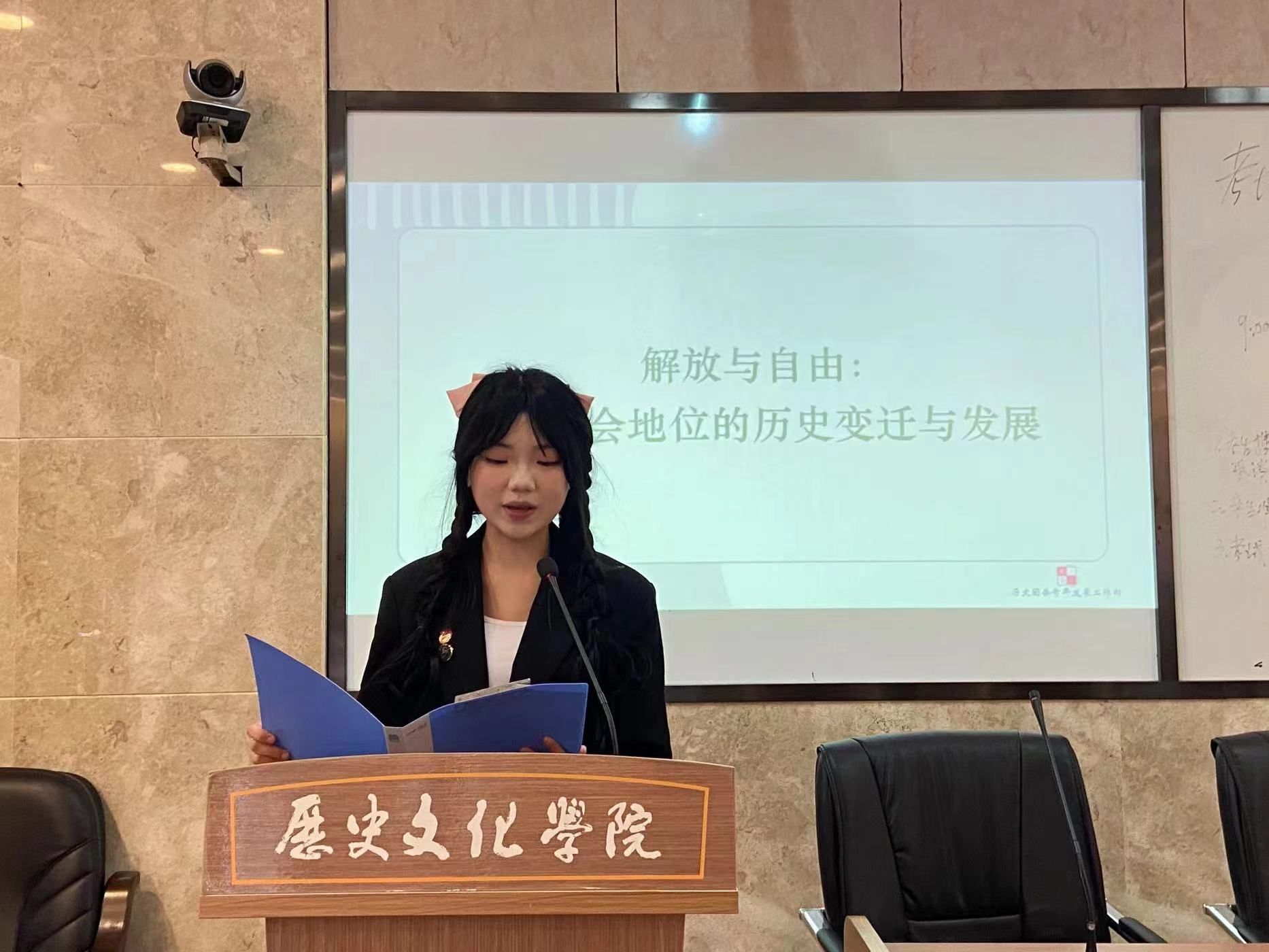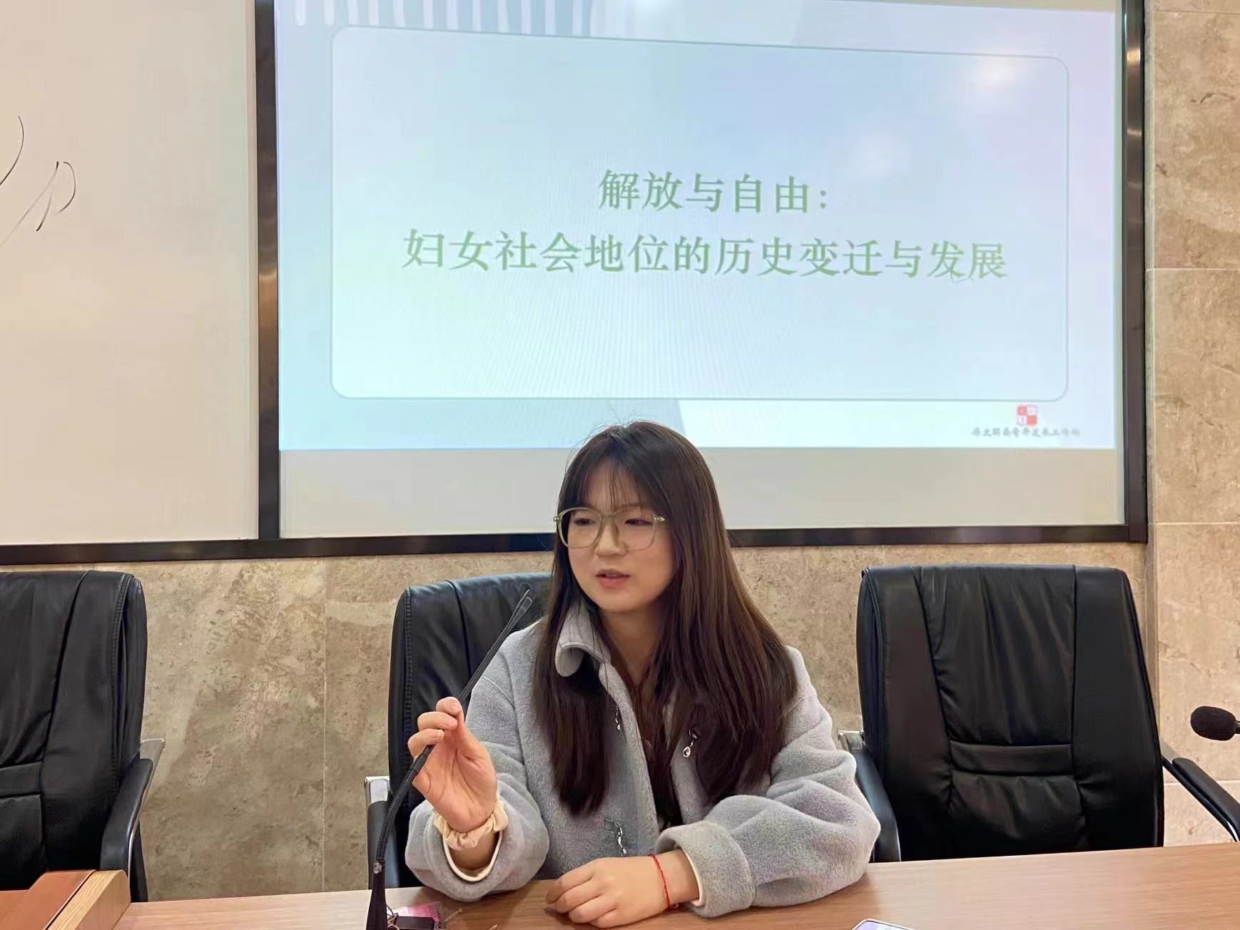 余莉洁以晚清妇女受到的束缚和压迫为切入点,带领学员深入了解近代中国妇女解放的历史背景,展现了妇女社会地位变迁的复杂性和艰巨性。通过讲述晚清妇女为提高自身社会地位而不懈斗争的故事,余莉洁进一步揭示了近代妇女解放运动对社会进步的重要意义。付豪爽结合所学历史知识,梳理近代世界妇女解放的脉络,并指出其对我国立法、教育、就业等方面贯彻性别平等观念的促进作用。最后,付豪爽对培训内容进行总结,她强调妇女解放不仅是妇女自身权益的争取,更是社会文明进步的重要标志。她鼓励学员正视历史、珍惜现在,为推动性别平等和妇女权益保护贡献自己的力量。