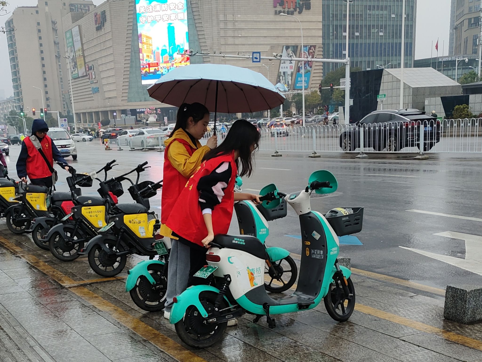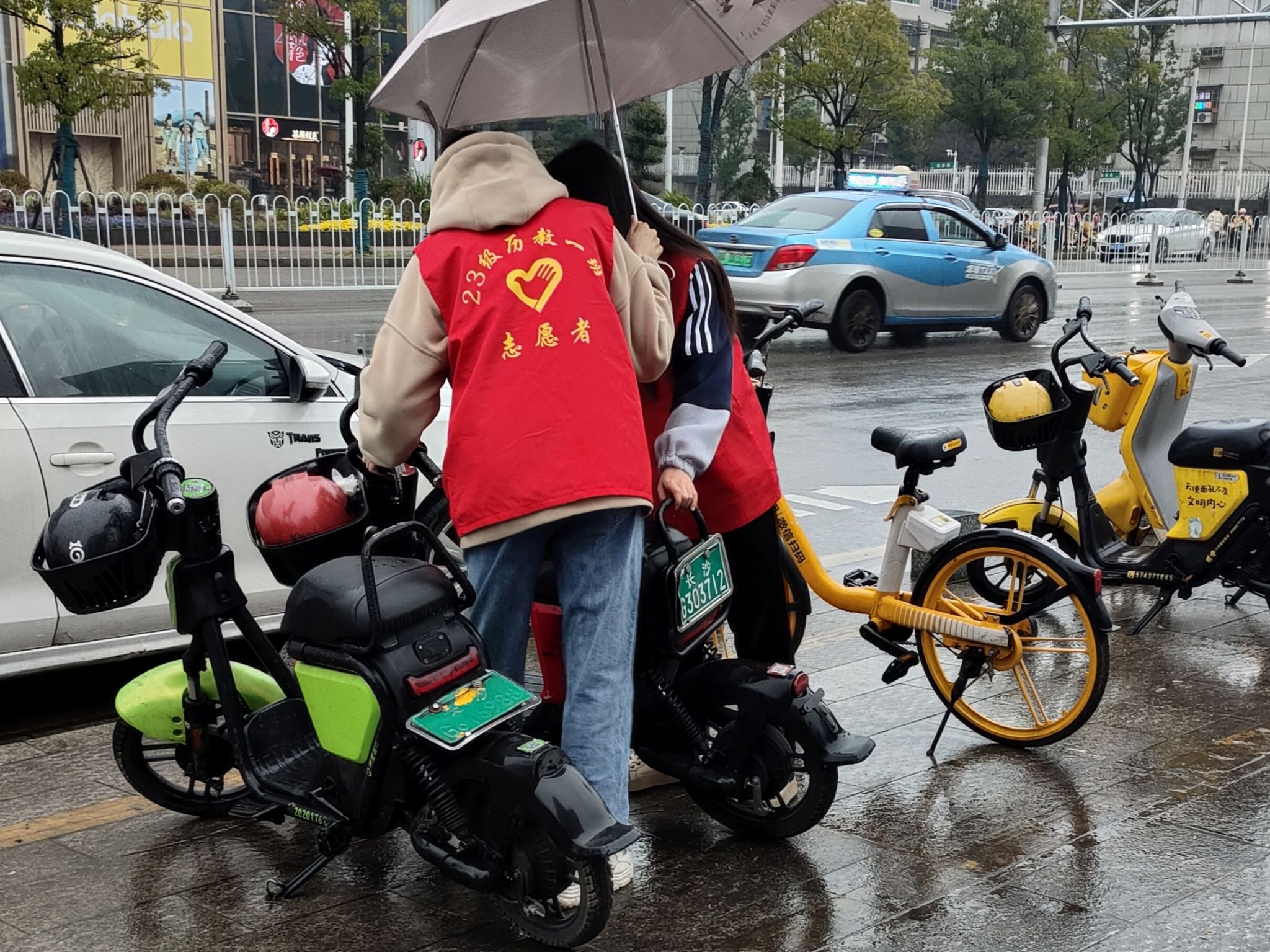 活动伊始,志愿者明确分配了任务,分组对共享单车进行整理,将占道、倒地的单车与电车移至停车点内,并调整摆放不规范的共享单车,使车头摆放方向一致,方便他人使用。同时,志愿者引导市民规范停车,并提醒前来取车的行人注意维护单车卫生,文明出行。最后,志愿者将自行车前筐与停车点附近的垃圾清理干净。