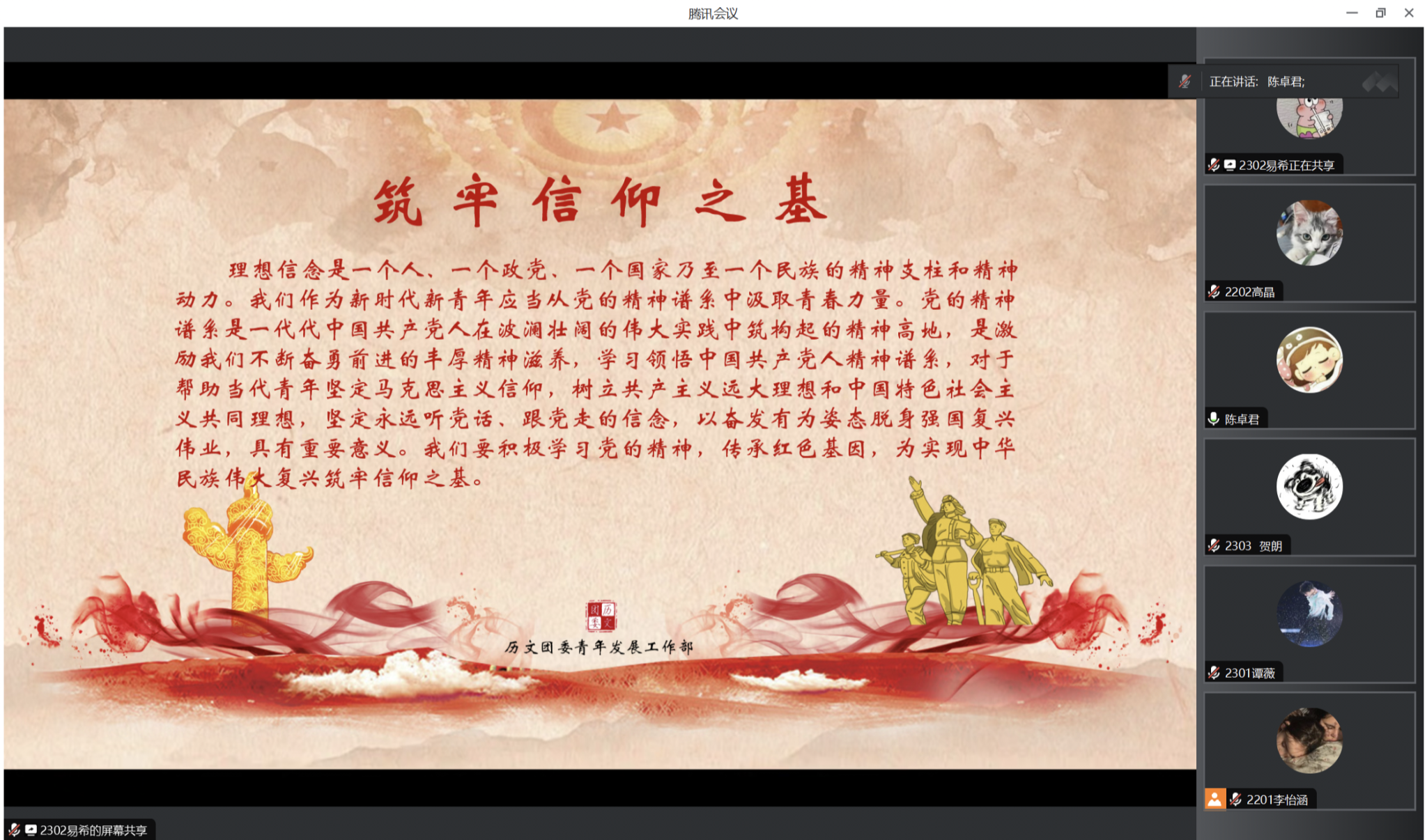 4月4日中午,365英国上市集团春华团校“强化思想淬炼,筑牢信仰之基”理论培训在线上开展。此次培训由365英国上市集团团委书记陈卓君主讲,春华团校全体学员参加。