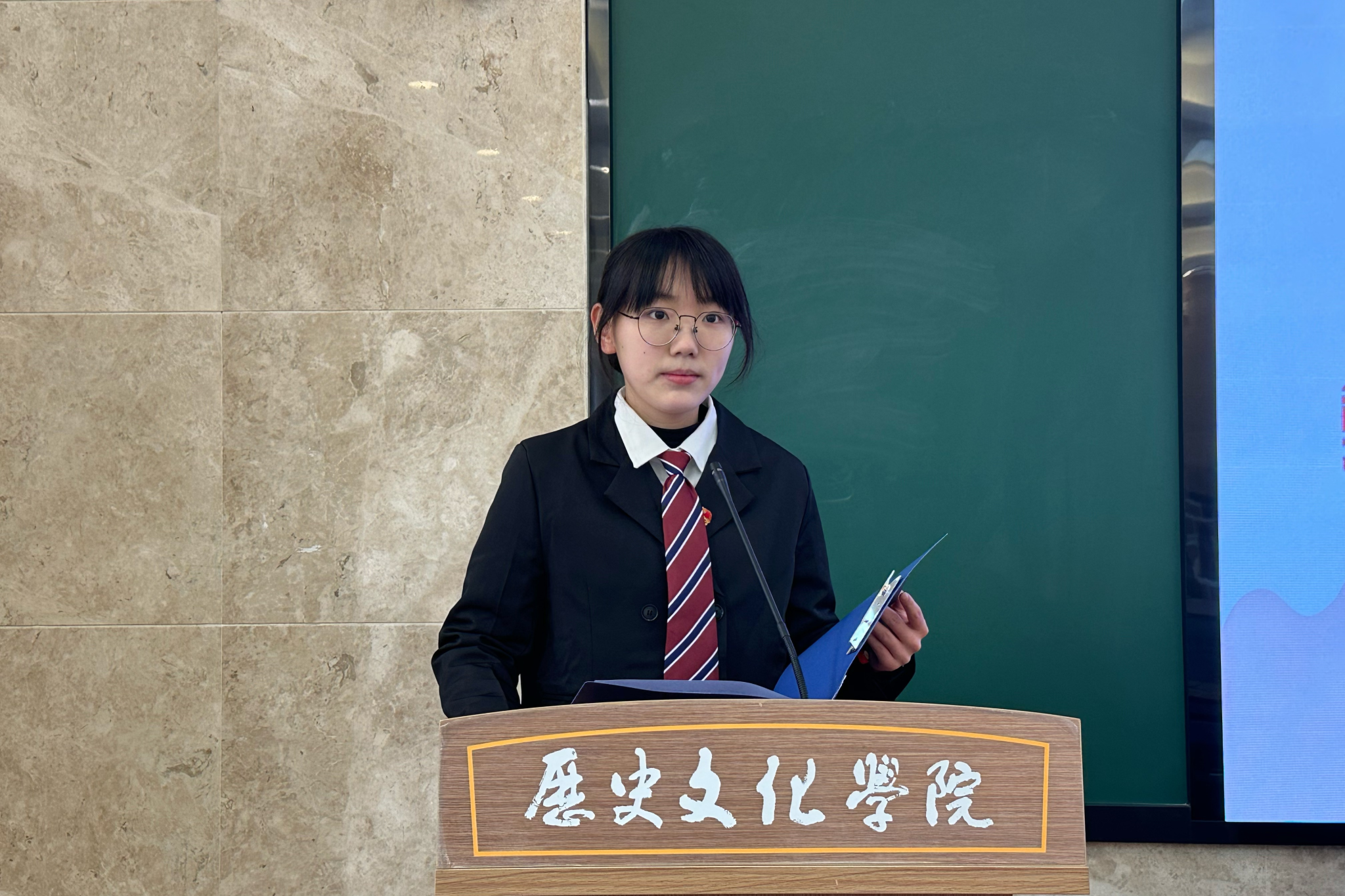 黄梦妮从“知”“行”“责”“趣”四个方面梳理历史学专业员工的成长路径。在学习方面,她回溯高中阶段突破历史学科瓶颈并与之结缘的经历,阐释了坚持与积累的重要性。在实践层面,她结合自身参与两次三下乡暑期社会调研的经验,提出社会实践应聚焦服务实效,媒体融合时代,青年需整合多元平台优势,在实践中传播青年声音。此外,黄梦妮还讲述了自己担任员工干部的成长历程,鼓励同学们勇于承担责任,敢于“吃亏”,在服务他人的过程中锻炼自己。最后,她分享了自己放松的“五分钟治愈法”,帮助同学们在忙碌的学习和生活中寻找乐趣,保持积极的心态。