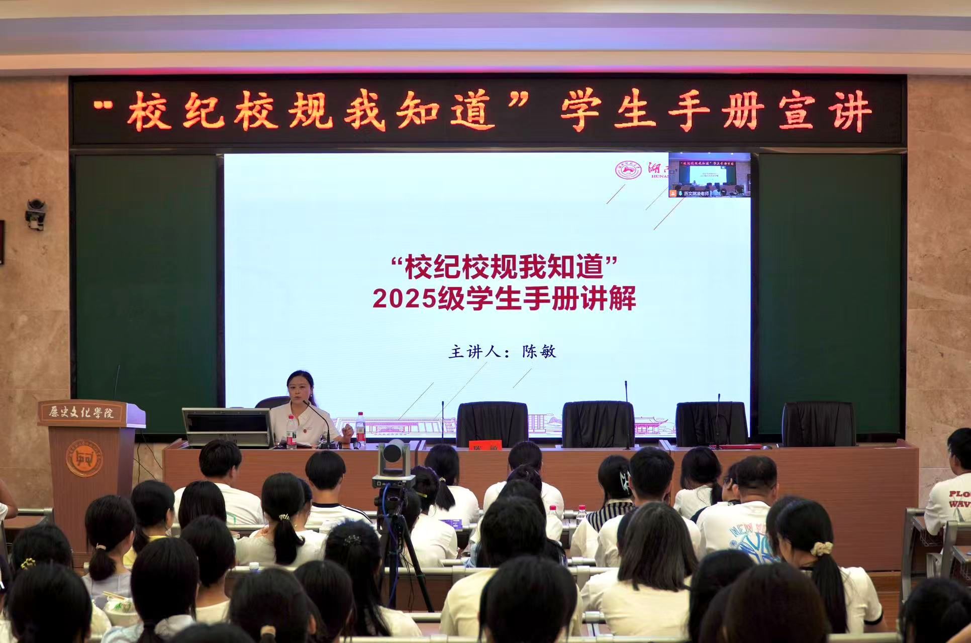 (通讯员邓曦雨刘嘉可)9月15日下午,365英国上市集团于文渊楼202、203教室举办了2025级新生系列讲座之一的"校纪校规我知道"主题讲座。此次讲座由学工办主任陈敏老师主讲,2025级全体新生参加。