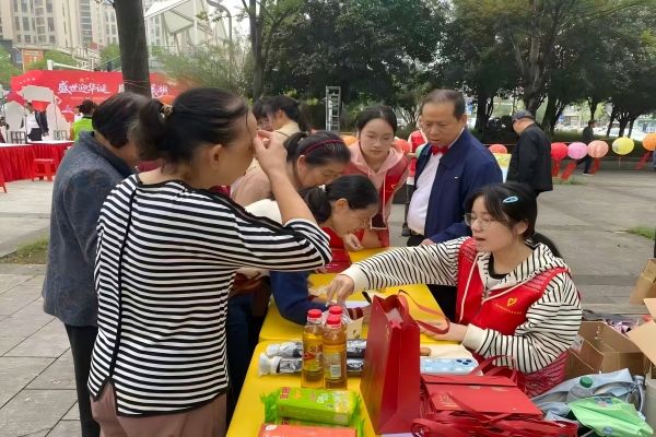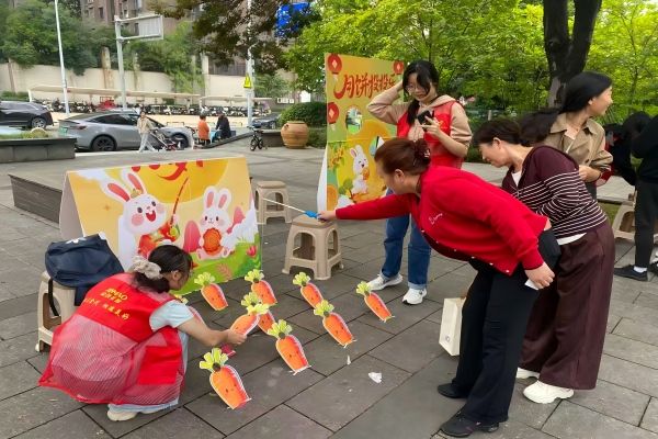 活动伊始,志愿者们领取服务工具和道具,提前规划各活动区域,协助社区工作人员完成活动现场搭建与布置工作。一组志愿者在工作人员的指导下,负责看守十个便民服务摊位,为社区居民提供服务,并维护庆典现场秩序。另一组志愿者驻守社区游园会的游戏摊位,组织居民参与趣味游戏,如“欢乐猜灯谜”、“月饼投投乐”和“知识飞花令”等,以轻松的形式助力社区双节庆祝。此外,部分志愿者协助社区人员筹备活动现场物料,对活动区域进行巡视,详细记录居民提出的建议与需求。志愿者们以热情贴心的服务态度,展现了新时代青年的责任与担当,赢得了社区居民们的一致好评。
