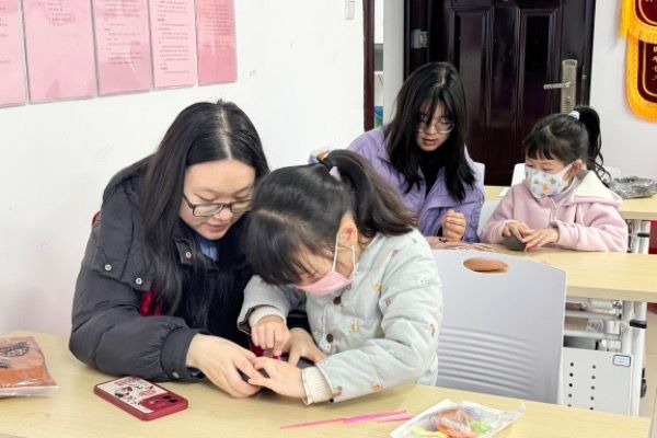 活动伊始,主讲人以现代窗户为引,自然过渡至传统门窗文化,让小朋友们对这一传统工艺有了初步认知。为了让千年窗韵变得可触可感,主讲人借助图片、影像等多媒体资料,系统梳理了中式门窗的发展脉络,并重点讲解了湖湘地区的门窗特色,让小朋友们清晰地感受到中式门窗在岁月变迁中的美学。随后,主讲人以窗棂形状为核心设计互动问答环节,重点展示了“冰裂纹”等特色纹饰,详细解读其中蕴含的吉祥寓意,并结合岳麓书院中的窗棂文化引出湖湘子弟“寒窗苦读”的传统,让小朋友们感受到中国建筑的美学智慧与人文温度。为使小朋友们进一步了解传统木构原理,主讲人设置“榫卯探秘”环节,详细介绍了经典榫卯结构的科学原理。在手工环节,小朋友们在志愿者们的协助下,用黏土制作出兼具传统特色和童趣的窗棂,并上台展示自己的作品。