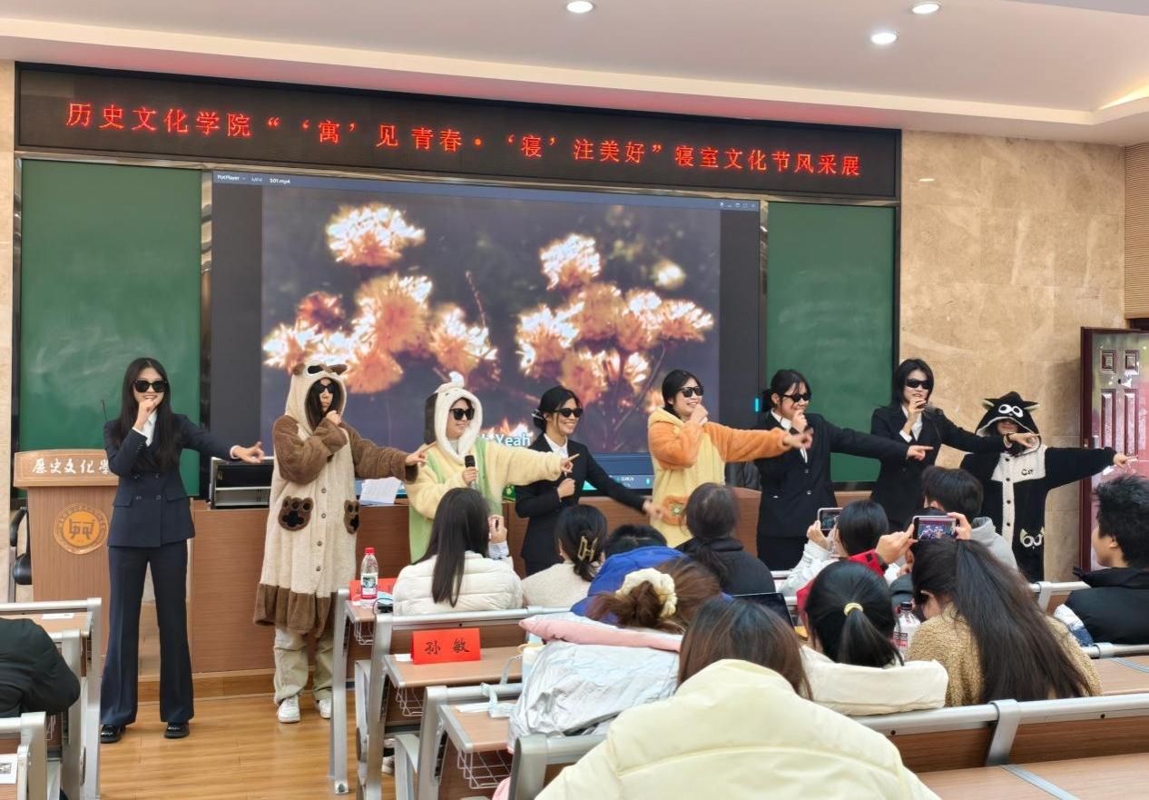 活动在院员工会生活服务部带来的开场表演《暖暖》中拉开帷幕。各参赛寝室依次上台展示,通过PPT讲解寝室故事、播放记录日常生活的视频、开展形式多样的才艺表演,多角度呈现了各自的寝室文化与特色。同学们在展示中融入巧思与创意,生动传递出温馨和谐、积极向上的寝室氛围。
