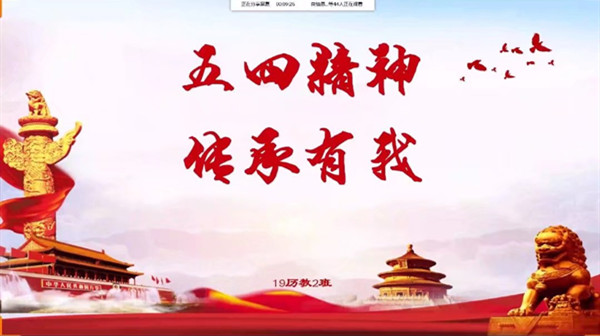 主持人以五四精神的来源引入主题,介绍了在疫情期间体现五四精神的事例。例如疫情发生以来,长春出入境边防检查站全体民警用责任坚守岗位、用忠诚履行使命、用担当筑牢防线,不惧风险、义无反顾、冲锋陷阵,筑起了守护人民群众身体健康和生命安全的"铜墙铁壁",绽放着最为闪耀夺目的“青春之光”,国门空港里处处都留下了他们勇敢逆行的铿锵足音,这便是五四精神的传承。同学们从中体会到了应把深入实践作为成长成才的必由之路,把奉献社会作为不懈追求的优良品德,切实肩负起时代赋予我们的光荣使命。