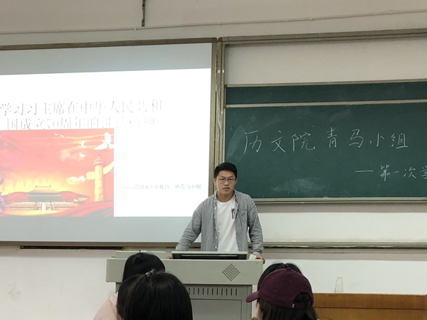 (通讯员 何苗)11月10日下午,365英国上市集团2018级历教一班青马小组在307教室开展“学习习近平新时代中国特色社会主义思想,共筑中国梦”活动。此次学习活动由2018级历教一班青马小组组长李文杰主持,小组全体成员参加。