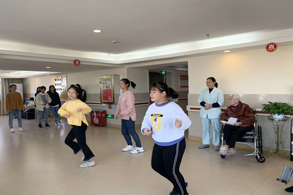 活动开展前,志愿者们在福利院相关工作人员的带领下前往老人住所,与老人进行沟通交流。随后,志愿者与老人一同来到福利院20楼大厅观看志愿者表演。此次志愿活动主要以讲解历史故事和节目表演为主。期间,志愿者为老人演唱《强军战歌》、《我和我的祖国》、《中国人民解放军进行曲》等歌曲,老人们也一同合唱。老人们在志愿者的鼓励下,也投入到其中,演唱了《没有共产党就没有新中国》等歌曲。最后,志愿者以历史剧的形式向老人们演绎了周恩来的生平事迹。活动结束后,志愿者与老人们合影道别。