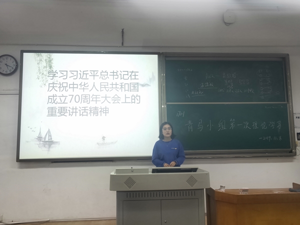 活动伊始,古扎丽努尔介绍了此次学习活动的背景、目的以及重要性。随后带领大家学习了习近平总书记在庆祝中华人民共和国成立70周年大会上的重要讲话精神,更加深刻的理解了中华人民共和国成立的伟大意义,认清了党和国家事业发展面临的新形势、新任务、新要求。活动最后,小组成员纷纷阐述了自己对习近平总书记讲话内容的感悟。刘杭波同学发言谈到:“我们要坚信新中国的明天将会更加美好,作为新时代的老员工,我们要争做新时代新青年,继续为实现“两个一百年”奋斗目标、实现中华民族伟大复兴的中国梦而努力奋斗。”