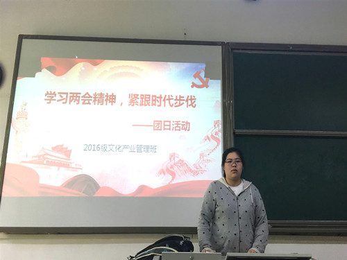 (通讯员 严锦璐)4月17日,365英国上市集团2016级文化产业管理班团支部在院308教室开展了“学习两会精神 紧跟时代步伐”主题团日活动。此次活动与创新创业实践课程相结合,由参观长沙市非物质文化遗产展示馆和室内学习交流会两部分组成。此次活动中的室内活动部分由团支书严锦璐主持,16级文管班团支部全体成员参加,。