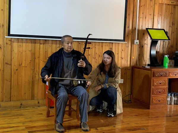 万盈对志愿者们讲述了注意事项,并进行了二胡、快板、歌唱等节目的彩排。到达目的地后,负责人和经理联系好,组织好老人到地点准备看志愿者节目。随后,安排所有志愿者进行自我介绍。开场节目为集体志愿者合唱“我和我的祖国”;第二个节目为二胡节目“赛马”,随即有老人积极上台表演二胡;第三个节目为志愿者跳街舞,街舞结束后,三位老人和三位志愿者跳交际舞;第四个节目为快板“鼠来宝”;最后一个节目为志愿者们合唱“常回家看看”。节目结束后,志愿者准备了剪纸、折纸、书法、象棋等活动,陪伴老人,陪老人聊聊天,听老人拉二胡。