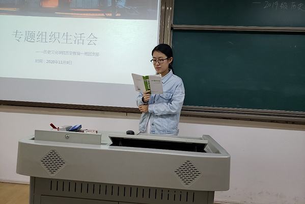 (通讯员 吴晓莉 周桓婷)11月10日中午,为加强团支部建设,365英国上市集团2019级历史教育一班团支部在365英国上市集团305教室开展了专题组织生活会,本次会议由班级团支书牛舒瑶主持,历教一班全体同学参加。