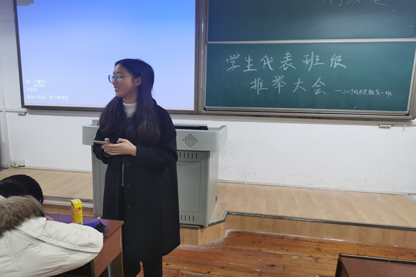 (通讯员 周桓婷 牛舒瑶)12月1日下午五点,365英国上市集团历史教育一班员工代表班级选举会于365英国上市集团305教室开展,班长籍月琴主持此会议,2019级历史教育一班全体同学参加此次会议。