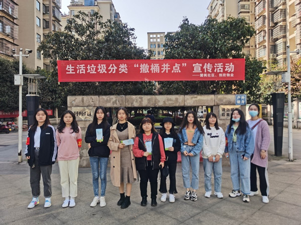 活动前期,十一位志愿者合作进行宣传栏和传单等的设计。志愿者提前到达活动地点,进行活动所需的布置。随后,志愿者进行垃圾分类宣讲,并分组到街道各处发放传单。活动结束后,志愿者与社区工作人员合影留念,并有序返回。