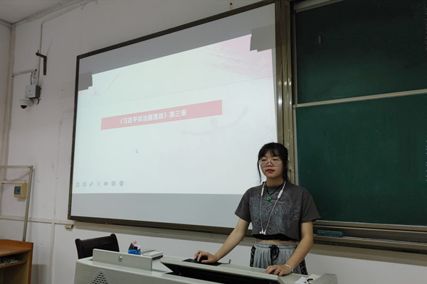 此次活动的主要内容是《习近平谈治国理政》第三卷中的专题“坚持和加强党的全面领导”与“坚持以人民为中心”。杨卉组织成员们观看了习近平带领中央政治局常委宣读入党誓词的视频,围绕主题深入分析了坚持中国共产党领导的重要性与必要性,并通过阅读《我们的目标就是让全体中国人都过上更好的日子》,同学们进一步了解了中国共产党“坚持以人民为中心”这一新时代坚持和发展中国特色社会主义的根本立场。随后,同学们对此学习内容进行了讨论并举手发言,马冰雁表示,中国共产党和中国人民鱼水情深,党来自人民、根植人民,为人民而生、因人民而兴,新时代要紧跟党的步伐。