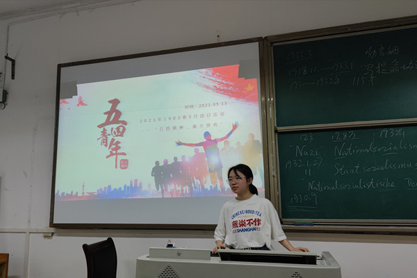 五月份的团日活动按照传统方式展开,团支书通过理论学习、播放相关纪录片,与班级青马小组学习相结合,重点学习《习近平谈治国理政》第三卷中“2019年4月30日习近平总书记在纪念五四运动100周年大会上的讲话”有关内容;每个团小组分别派代表就“树立远大理想、热爱伟大祖国、担当时代责任、勇于砥砺奋斗、练就过硬本领、锤炼品德修为”六个方面进行分享与解读;最后,由班级“五四运动是否激进”辩论赛代表成员分享“五四运动”故事,同学们积极参与,傅一晨表示,青年是整个社会力量中最积极、最有生气的力量,民族的未来在青年,青年们更要学习过硬本领,为中华民族的伟大复兴而奋斗。