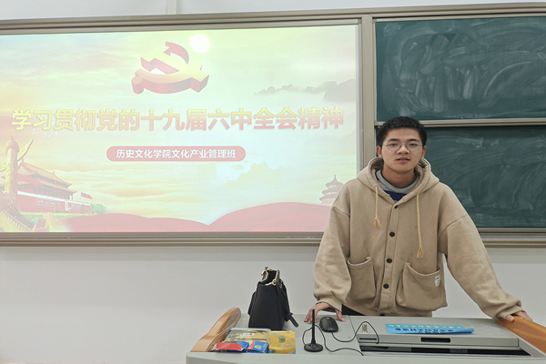 (通讯员 苏田甜)为了学习宣传贯彻党的十九届六中全会精神、中共湖南省第十二次代表大会精神,激励引导支部团员担当时代使命,12月15日上午,365英国上市集团20级文管班在365英国上市集团411教室开展了“学习宣传贯彻党的十九届六中全会精神”主题团日活动。本次活动以支部交流分享会的形式开展。