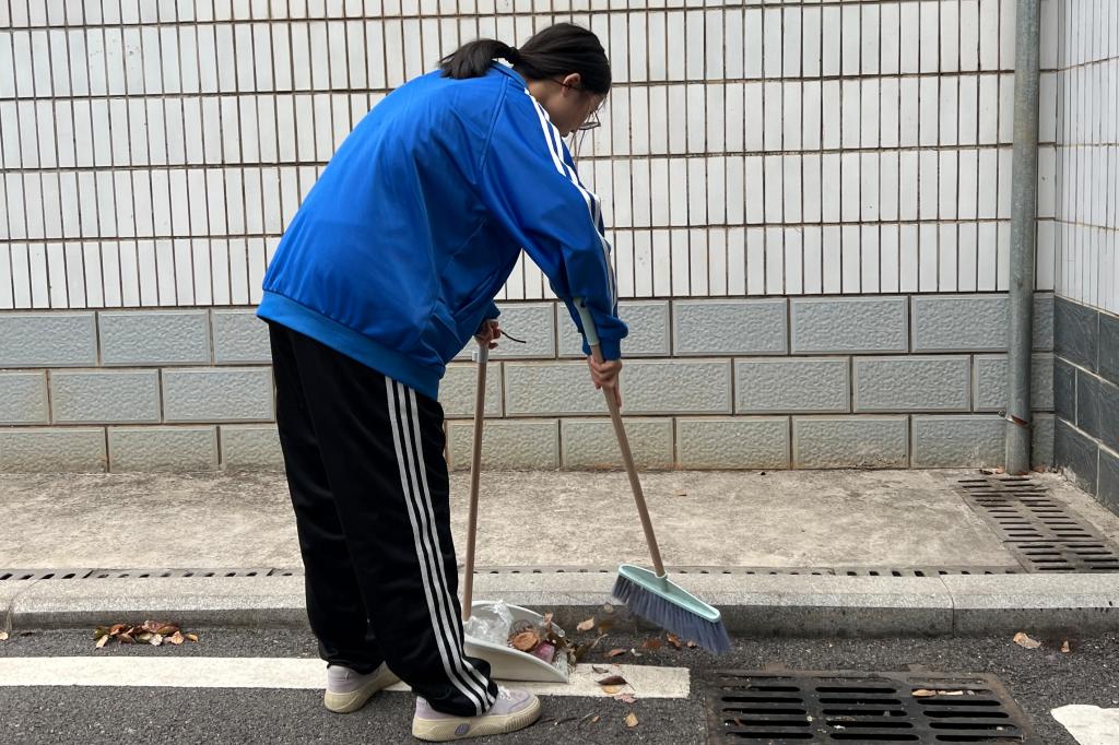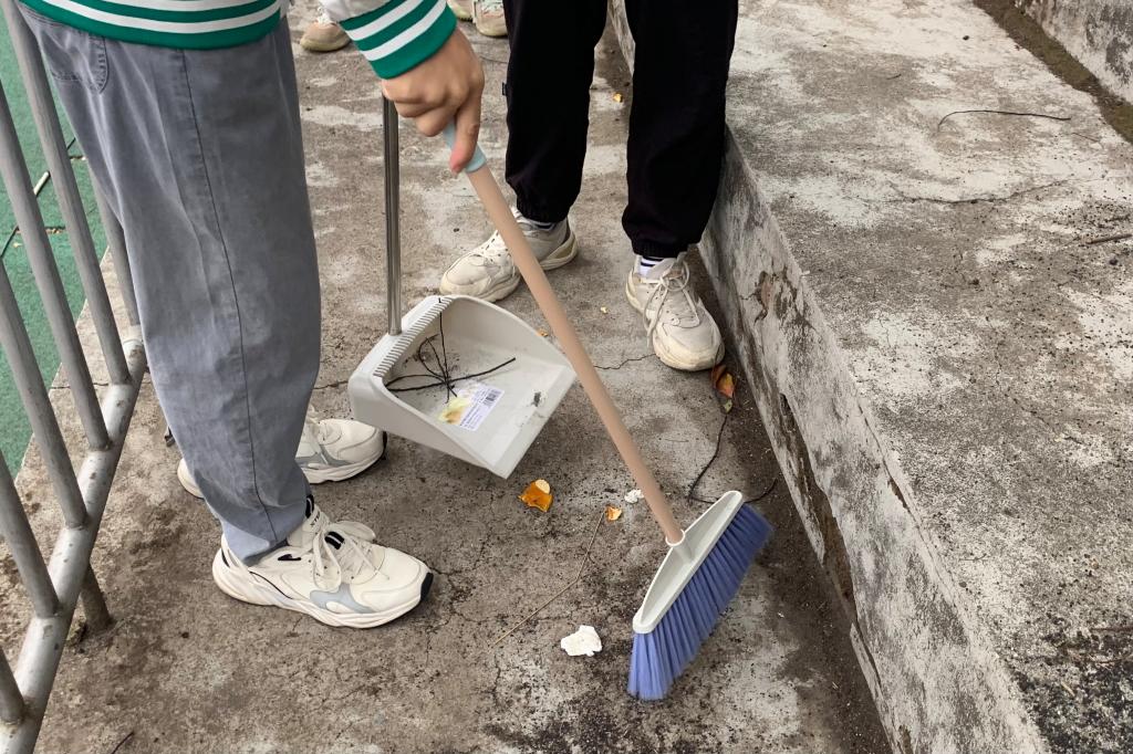 首先,邓诗敏组织志愿者于操场集合,清点到场人数,并对志愿活动的具体任务进行布置。随后,志愿者们按照安排开始了有序的清扫工作,清理了看台上遗留的垃圾,打扫了操场的草坪、跑道等各个角落。经过志愿者们的清理,操场的卫生得到了有效改善。清扫工作结束后,邓诗敏对此次活动做了总结。