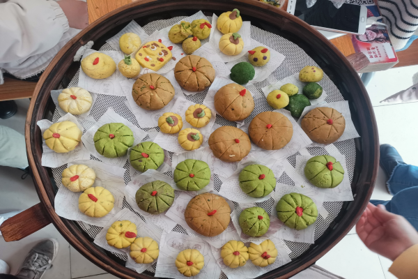 理事们提前到达天马食堂,与工作人员协调工作,并准备好食材。在组织好会员们进行签到分组后,理事杨贵钦简要介绍了紫薯小南瓜的制作方法,鼓励会员们发挥创造力一起交流,创新紫薯南瓜的制作方法。随后,全体理事将在提前准备好的熟南瓜、紫薯、面粉等食材分发给各小组。会员们领取制作工具及食材后,组内分工合作,经去紫薯南瓜皮、和面、成形、雕花四步,完成了制作。理事们借用食堂工具蒸熟,请会员们品尝了自己的劳动成果。